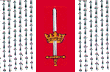 Bandera de Carolina La Bandera cuenta con tres franjas verticales, blancas las laterales y roja la del centro. Las Laterales, de 7 ½ módulos de anchura cada una, están sembradas de rabos de armiño negros, figurados a la manera heráldica. En la franja central, de 10 módulos de ancho, aparecen la espalda y corona del Escudo, en idéntica disposición, con la diferencia de que sus colores son blancos y amarillos en lugar de plata y oro.